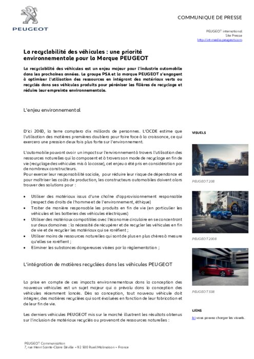 Peugeot : la recyclabilité, priorité environnementale