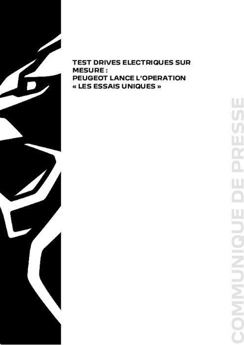 PEUGEOT lance au mois de Mars 2022 une vaste opération d’essais personnalisés de sa gamme de modèles électrifiés : « Les Essais Uniques ». Objectif : transmettre aux conducteurs la maîtrise des nouvelles technologies électrifiées. PEUGEOT lance en Mars, sur le territoire français, une vaste opération d’essais, favorisant la découverte des technologies électriques et hybrides des véhicules de sa gamme...
