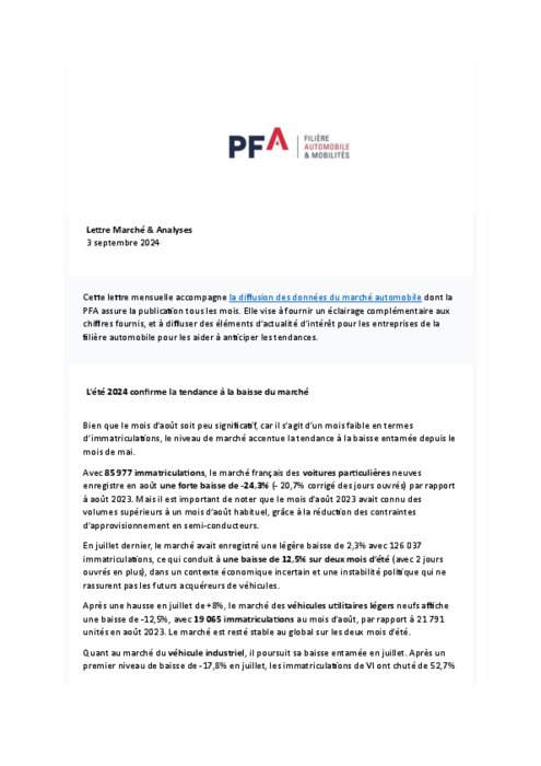 Services 03 septembre 2024 - 16:14 L’été 2024 confirme la tendance à la baisse du marché : Bien que le mois d’août soit peu significatif le niveau de marché accentue la tendance à la baisse entamée depuis le mois de mai. ͏ ͏ ͏ ͏ ͏ ͏ PDF (157 Ko) Télécharger