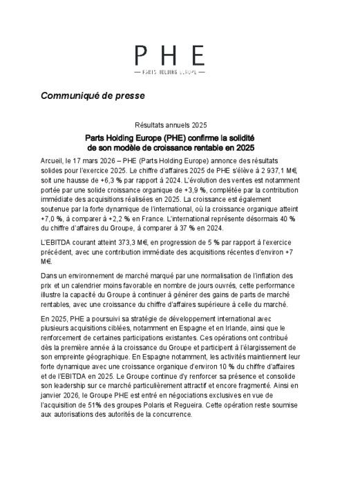 PHE confirme la solidité de son modèle de croissance rentable en 2025