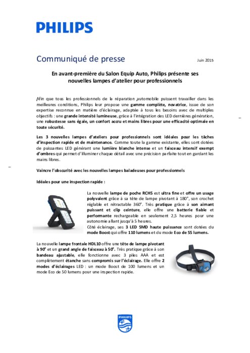 Afin que tous les professionnels de la réparation automobile puissent travailler dans les meilleures conditions, Philips leur propose une gamme complète, novatrice, issue de son expertise reconnue en matière d’éclairage, adaptée à tous les besoins avec de multiples objectifs : une grande intensité lumineuse, grâce à l'intégration des LED dernières génération, une robustesse sans égale, un confort accru et mains libres pour une efficacité optimale en toute sécurité.
