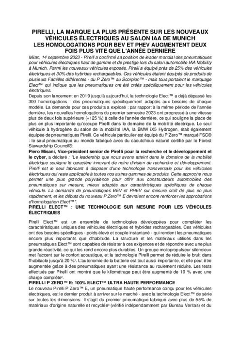 Equipementiers 14 septembre 2023 - 18:47 Depuis son lancement en 2019 jusqu'à aujourd'hui, la technologie Elect a déjà dépassé les 300 homologations : des pneumatiques spécifiquement adaptés aux besoins de chaque modèle. PDF (153 Ko) Télécharger