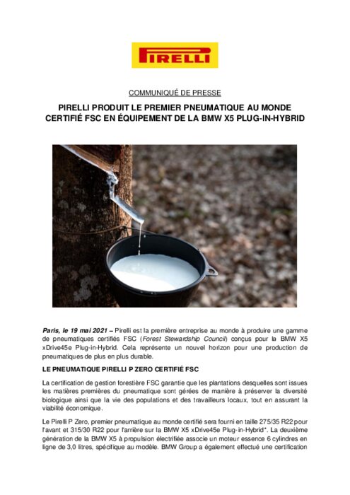 Pirelli est la première entreprise au monde à produire une gamme de pneumatiques certifiés FSC (Forest Stewardship Council) conçus pour la BMW X5 xDrive45e Plug-in-Hybrid. Cela représente un nouvel horizon pour une production de pneumatiques de plus en plus durable.