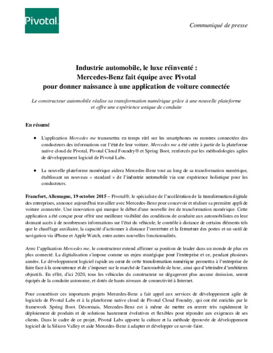 Pivotal digitalise et connecte Mercedes-Benz