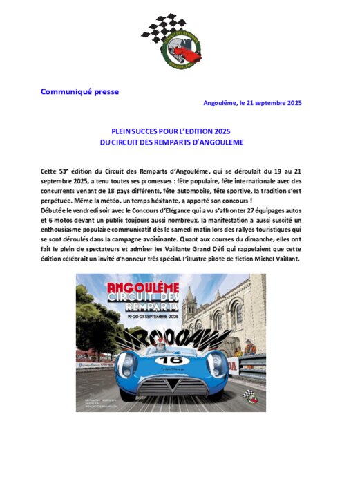 Cette 53e édition du Circuit des Remparts d’Angoulême, qui se déroulait du 19 au 21 septembre 2025, a tenu toutes ses promesses : fête populaire, fête internationale avec des concurrents venant de 18 pays différents, fête automobile, fête sportive, la tradition s’est perpétuée.