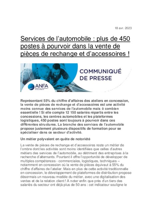Plus de 450 postes à pourvoir dans la vente de pièces de rechange et d’accessoires