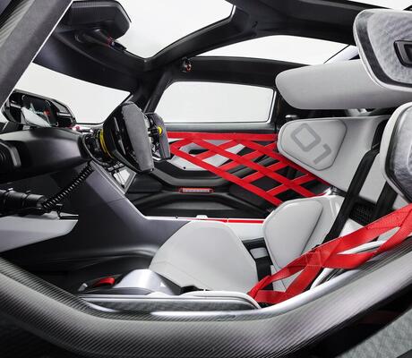 L’habitacle a été entièrement conçu pour placer le pilote au centre. Un écran ergonomique positionné entre les poignées du volant affiche les informations pertinentes pendant la course. Le moniteur au-dessus de la colonne de direction permet de visualiser les images de la caméra latérale des rétroviseurs extérieurs et de la caméra en position centrale à l’arrière. Un écran tactile à droite du siège permet de consulter notamment les données biométriques du pilote. De nombreuses autres caméras couvrent différentes vues de l’habitacle pour une transmission en direct.