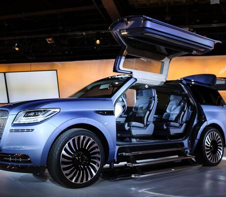 Ce véhicule, prochaine génération du SUV Lincoln Navigator lancé il y a vingt ans, dispose de portes géantes à ouverture papillon qui permettent d'accéder simultanément aux sièges avant et arrière. Le constructeur se convertit ainsi lui aussi aux portières à ouverture papillon, introduites par Mercedes-Benz dans les années 1950 et remises au goût du jour en 2015 par le groupe de véhicules électriques de luxe Tesla, avec son crossover Model X.