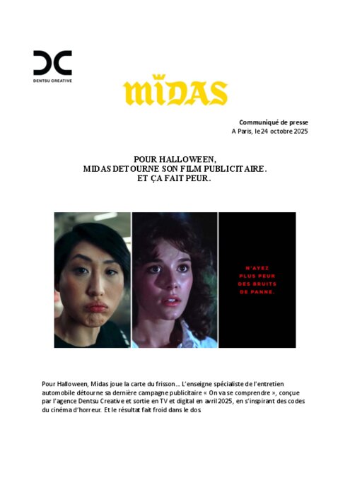 Pour Halloween, Midas joue la carte du frisson… L’enseigne spécialiste de l’entretien automobile détourne sa dernière campagne publicitaire « On va se comprendre », conçue par l’agence Dentsu Creative et sortie en TV et digital en avril 2025, en s’inspirant des codes du cinéma d’horreur. Et le résultat fait froid dans le dos.