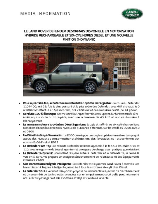Pour la première fois, le Defender en motorisation hybride rechargeable (+vidéo)