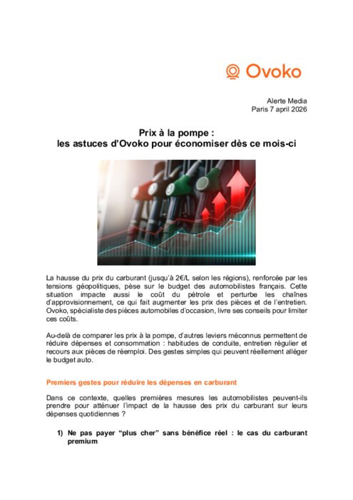 La hausse du prix du carburant (jusqu’à 2€/L selon les régions), renforcée par les tensions géopolitiques, pèse sur le budget des automobilistes français. Cette situation impacte aussi le coût du pétrole et perturbe les chaînes d’approvisionnement, ce qui fait augmenter les prix des pièces et de l’entretien. Ovoko, spécialiste des pièces automobiles d’occasion, livre ses conseils pour limiter ces coûts.
