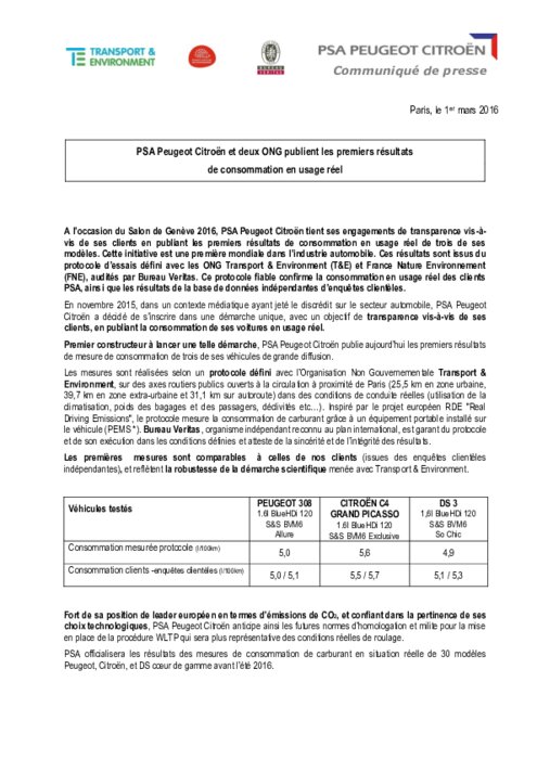 En novembre dernier, deux mois après le début du scandale aux moteurs truqués du géant allemand, PSA avait indiqué avoir conclu un accord avec l'ONG verte "Transport et Environnement" (T&E) pour cette opération.