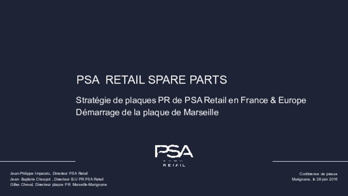 (*) N.B: Il s'agit des 40 plaques détenues par PSA Retail, donc de 40 plaques filiales de PSA. Le programme de plaques PR multimarque de PSA reste bien de 160 plaques en Europe, dont 120 détenues par des investisseurs et 40, donc, détenues par PSA via PSA Retail...