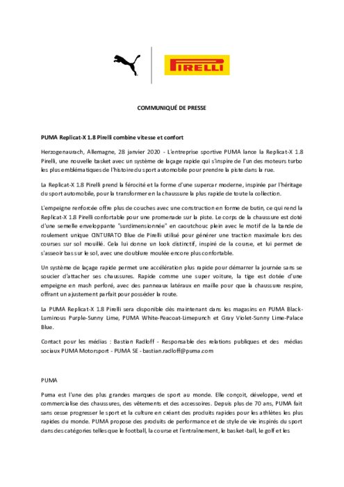 L'entreprise sportive PUMA lance la Replicat-X 1.8 Pirelli, une nouvelle basket avec un système de laçage rapide qui s'inspire de l'un des moteurs turbo les plus emblématiques de l'histoire du sport automobile pour prendre la piste dans la rue. La Replicat-X 1.8 Pirelli prend la férocité et la forme d'une supercar moderne, inspirée par l'héritage du sport automobile, pour la transformer en la chaussure la plus rapide de toute la collection.
