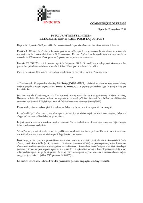 PV pour vitres teintées: des poursuites pénales invalidées !