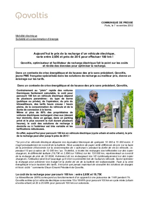 Dans un contexte de crise énergétique et de hausse des prix sans précédent, Qovoltis, jeune PME française spécialisée dans les solutions de recharge au meilleur prix, donne un éclairage sur les tarifs.