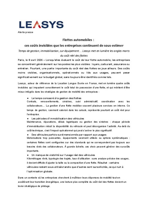 Quel est le coût réel d'une flotte automobile ? (Etude LEASYS)