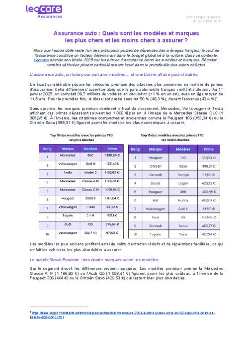 Quels sont les modèles et marques les plus chers et les moins chers à assurer ? (Leocare)