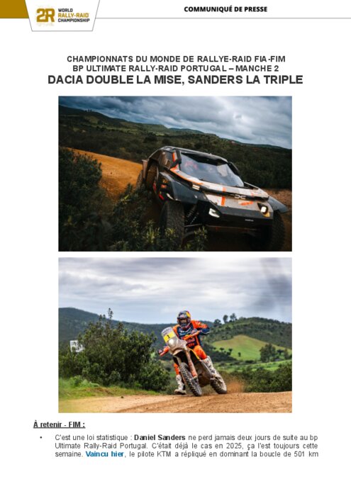 Rallye-raid : Dacia double la mise, Sanders la triple