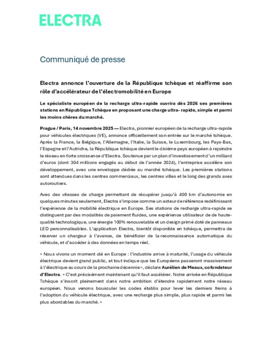 Recharge : Electra annonce l’ouverture de la République tchèque