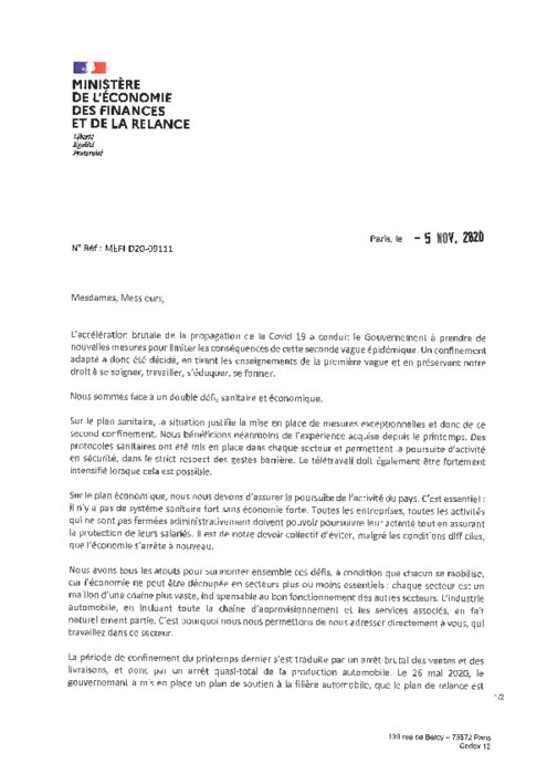 "Le Gouvernement a fait le choix d'autoriser les retraits de commandes de véhicules pour permettre la continuité de l'activité de la filière dans son ensemble (…). Par ailleurs, comme durant le premier confinement, les garages, la réparation automobile et l'activité d'après-vente sont des activités considérées comme essentielles, donc autorisées."