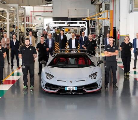 Lamborghini a atteint une étape historique importante avec son modèle V12 : en neuf ans, l’usine de Sant’Agata à Bologne a produit 10 000 Aventadors. La voiture avec le numéro de châssis 10,000 est une Aventador SVJ Roadster en Grigio Acheso (gris) avec Rosso Mimir (rouge) et Ad Personam intérieur en Rosso Alala (rouge) et noir. La voiture est destinée au marché thaïlandais.