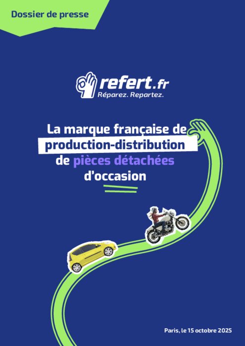 Refert.fr est née d’une conviction simple : la pièce de réemploi est une évidence à la fois économique, écologique et pratique. Dans un marché où l’automobiliste associe encore trop souvent la pièce d’occasion à une solution “de second choix”, Refert.fr choisit de renverser la perception. Son credo est clair : “Réparez. Repartez.”. Une signature qui résume une promesse double : rendre la réparation plus facile et la mobilité plus accessible.