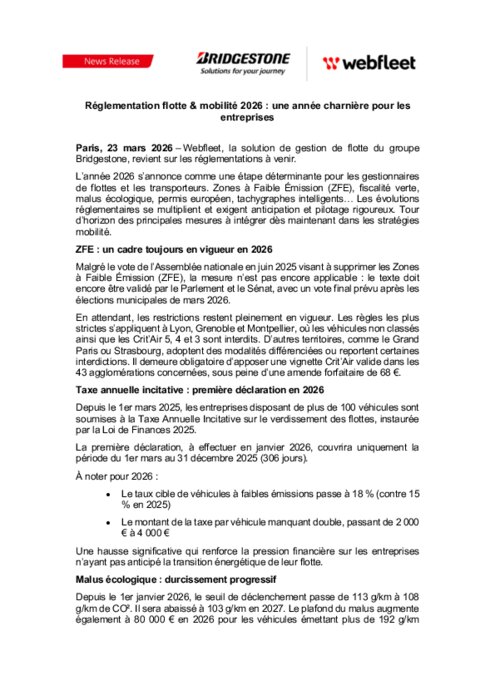Réglementation flotte & mobilité 2026 : une année charnière (Webfleet)