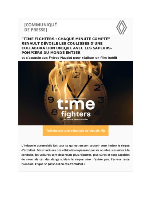 Le programme « human first program » développé par Renault permet de présenter au grand public toutes les initiatives de la marque en matière de sécurité avant, pendant et après le crash. C’est le fruit d’un travail collaboratif entre les 600 ingénieurs, les experts sécurité, les chefs de produit, le LAB, et - particularité chez Renault depuis 2010 - les sapeurs-pompiers, qui, couplé aux dernières innovations technologiques, permet aujourd’hui à Renault de se démarquer.