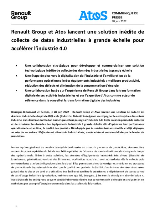 Renault Group et Atos : collecte de datas industrielles à grande échelle