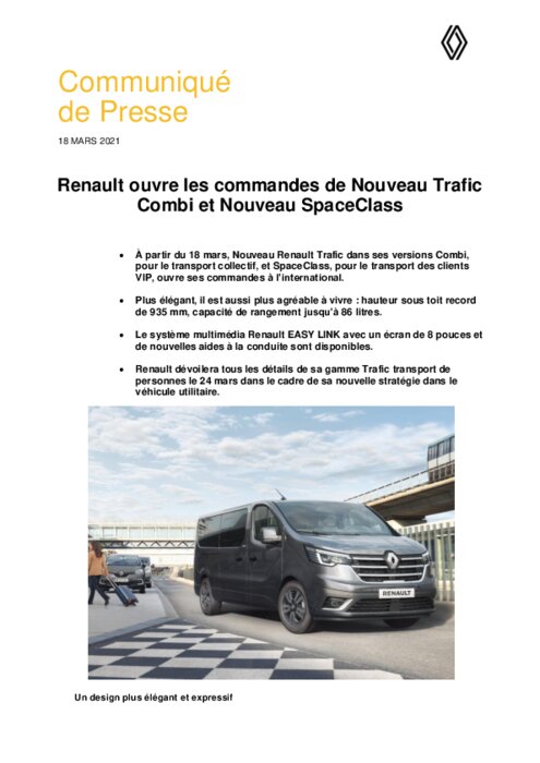 Renault: nouveau Trafic Combi et SpaceClass disponible à la commande