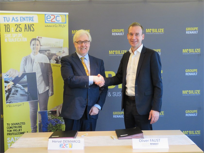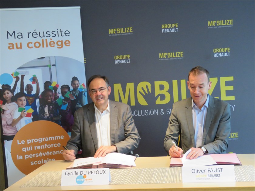 Dans le cadre de sa démarche Mobilize qui rassemble l’ensemble de ses actions RSE, le Groupe Renault mène une politique de mécénat pour contribuer à l’émergence d’une société plus inclusive et durable, notamment en favorisant l’accès à l’éducation et en aidant les jeunes à trouver leur place dans le monde du travail. Dans cet objectif, le Groupe s’engage aujourd’hui pour les trois années à venir auprès de l' Ecole de la 2ème chance en Yvelines, Energie Jeunes et l’Institut de l’Engagement.