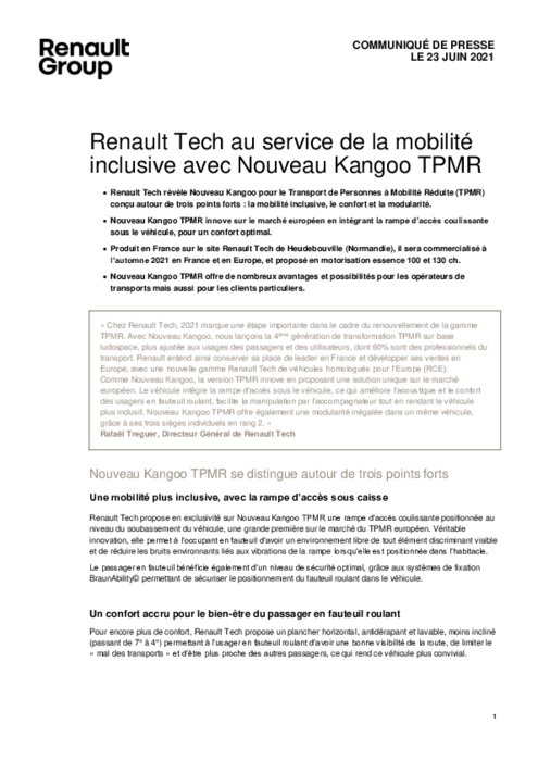 Renault Tech propose en exclusivité sur Nouveau Kangoo TPMR une rampe d'accès coulissante positionnée au niveau du soubassement du véhicule, une grande première sur le marché du TPMR européen. Véritable innovation, elle permet à l'occupant en fauteuil d'avoir un environnement libre de tout élément discriminant visible et de réduire les bruits environnants liés aux vibrations de la rampe lorsqu'elle est positionnée dans l'habitacle....