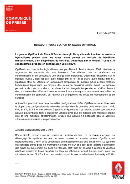 RENAULT TRUCKS ELARGIT SA GAMME OPTITRACK