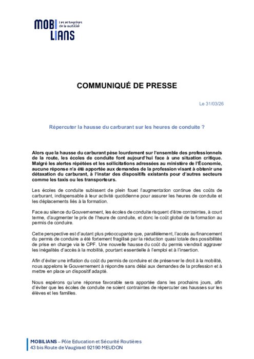 Alors que la hausse du carburant pèse lourdement sur l’ensemble des professionnels de la route, les écoles de conduite font aujourd’hui face à une situation critique. Malgré les alertes répétées et les sollicitations adressées au ministère de l’Économie, aucune réponse n’a été apportée aux demandes de la profession visant à obtenir une détaxation du carburant, à l’instar des dispositifs existants pour d’autres secteurs comme les taxis ou les transporteurs.