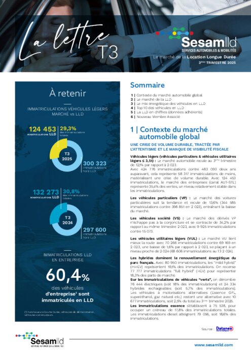 Véhicules légers (voitures particulières et utilitaires légers ≤ 3,5 tonnes) : Au troisième trimestre, le marché automobile enregistre une baisse de 12,1 % par rapport à 2023. On compte 424 776 immatriculations, soit 58 317 de moins qu’il y a deux ans (483 093 immatriculations), ce qui confirme une crise de volume persistante. Le marché des entreprises (canal AUT-STE) totalise 124 453 immatriculations, représentant 35,4 % des ventes, un niveau relativement stable.