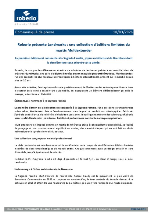Roberlo, la marque de référence en matière de solutions de remise en peinture automobile, vient de présenter Landmarks, une série d'éditions limitées de son mastic le plus emblématique, Multiextender, l'un des produits les plus reconnus de l'entreprise à l'échelle internationale, présent sur le marché depuis plus de 30 ans.