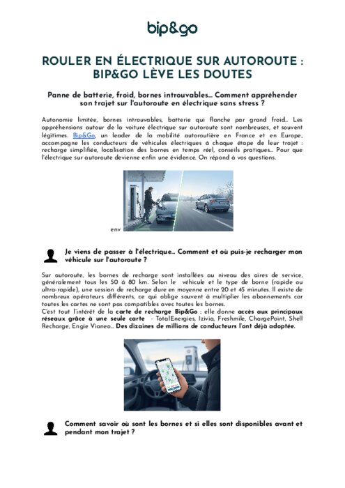 Rouler en électrique sur l'autoroute : Bip&Go lève les doutes