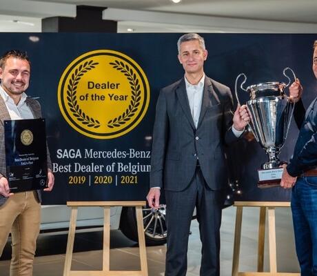 SAGA-Piret a obtenu cette année – à nouveau - un score très élevé sur la Dealer Score Card et s’est donc vu décerner le trophée « Best Dealer 2021 ». Pour la troisième année consécutive SAGA-Piret porte le titre de meilleur concessionnaire Mercedes-Benz de Belgique et du Luxembourg.