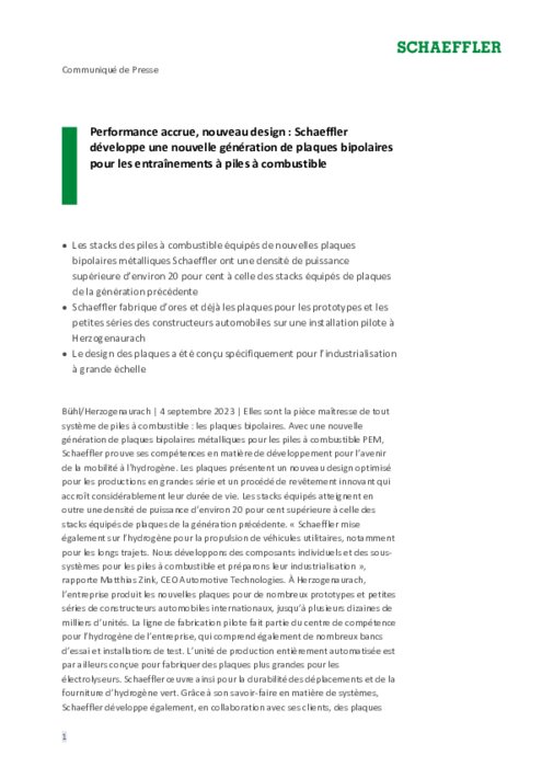 Avec une nouvelle génération de plaques bipolaires métalliques pour les piles à combustible PEM, Schaeffler prouve ses compétences en matière de développement pour l’avenir de la mobilité à l'hydrogène. Les plaques présentent un nouveau design optimisé pour les productions en grandes série et un procédé de revêtement innovant qui accroît considérablement leur durée de vie.