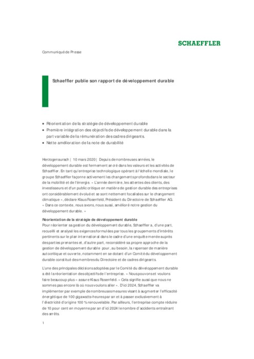 Depuis de nombreuses années, le développement durable est fermement ancré dans les valeurs et les activités de Schaeffler. En tant qu'entreprise technologique opérant à l'échelle mondiale, le groupe Schaeffler façonne activement les changements profonds dans le secteur de la mobilité et de l'énergie...