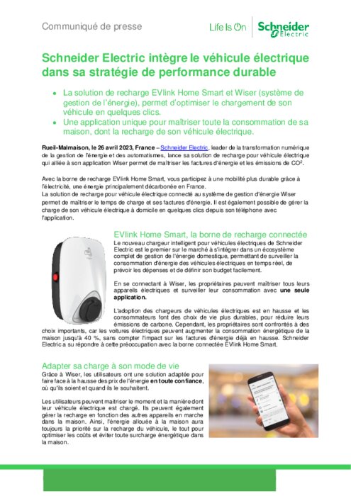 Equipementiers 26 avril 2023 - 14:12 Schneider Electric lance sa borne de recharge EVlink Home Smart. Cette solution connectée au système de gestion d'énergie Wiser permet de maîtriser le temps de charge de son véhicule et ses factures d'énergie. PDF (243 Ko) Télécharger