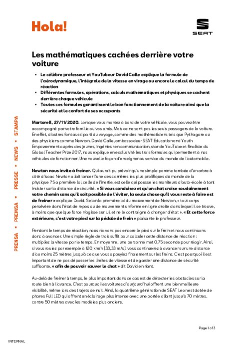 Le célèbre professeur et YouTubeur David Calle explique la formule de l'aérodynamique, l'intégrale de la vitesse en virage ou encore le calcul du temps de réaction. Différentes formules, opérations, calculs mathématiques et physiques se cachent derrière chaque véhicule. Toutes ces formules garantissent le bon fonctionnement de la voiture ainsi que la sécurité et le confort de ses occupants.