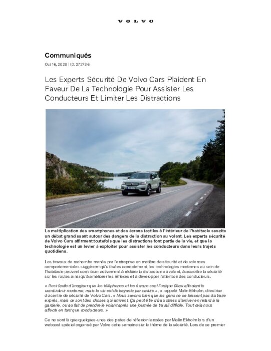 La multiplication des smartphones et des écrans tactiles à l’intérieur de l’habitacle suscite un débat grandissant autour des dangers de la distraction au volant. Les experts sécurité de Volvo Cars affirment toutefois que les distractions font partie de la vie, et que la technologie est un levier à exploiter pour assister les conducteurs dans leurs trajets quotidiens.