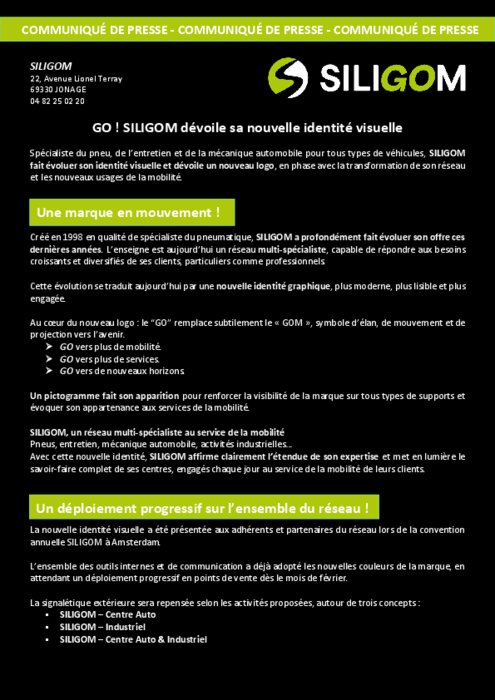 Spécialiste du pneu, de l’entretien et de la mécanique automobile pour tous types de véhicules, SILIGOM fait évoluer son identité visuelle et dévoile un nouveau logo, en phase avec la transformation de son réseau et les nouveaux usages de la mobilité.
