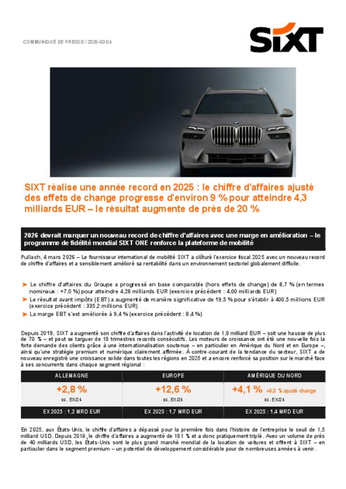 L'exercice 2025 marque une nouvelle étape dans la trajectoire de croissance du Groupe : avec un chiffre d'affaires ajusté des effets de change en hausse de 8,7 % à 4,28 milliards EUR et un résultat avant impôts en progression de près de 20 % à 400,5 millions EUR.