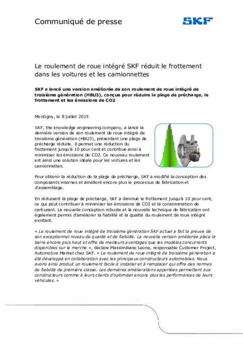 SKF a lancé une version améliorée de son roulement de roue intégré de troisième génération (HBU3), conçue pour réduire la plage de précharge, le frottement et les émissions de CO2.