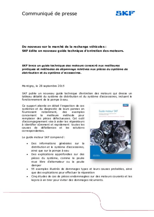 SKF lance un guide technique des moteurs consacré aux meilleures pratiques et méthodes de dépannage relatives aux pièces du système de distribution et du système d’accessoires.