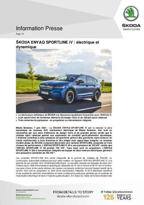 Škoda Enyaq Sportline iV : électrique et dynamique
