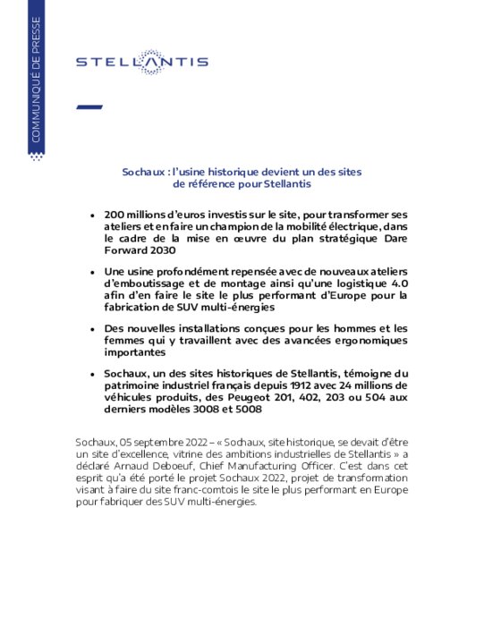 Constructeurs 05 septembre 2022 - 17:42 200 millions d’euros investis sur le site, pour transformer ses ateliers et en faire un champion de la mobilité électrique, dans le cadre de la mise en œuvre du plan stratégique Dare Forward 2030. PDF (110 Ko) Télécharger